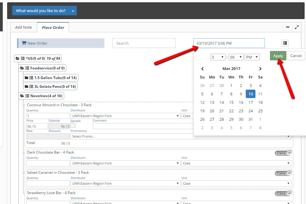 3. Change the date on the top of the Order Cart to the future date that the Turnover Order should begin pending and future promotion schedules may be valid.